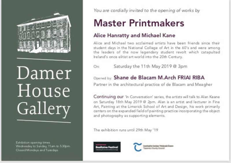 The first exhibition new season in 2019 opened on 1st May with a brilliant exhibition of two acclaimed artists, showing recent work of prints, oil paintings and mixed media sculpture. Both are in their 80’s and are Aosdána members. Their work is recognized Nationally and Internationally, and their career as Master-printmakers and teachers is legendary.