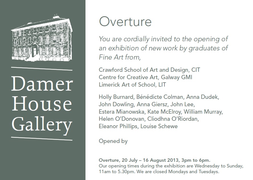 Overture 2013 opened on 20 July 2013 featuring works by Graduates of fine Art