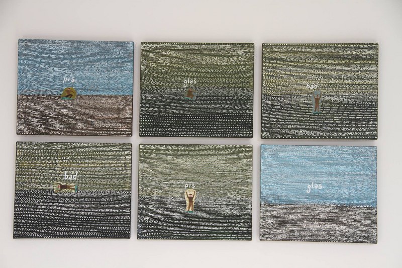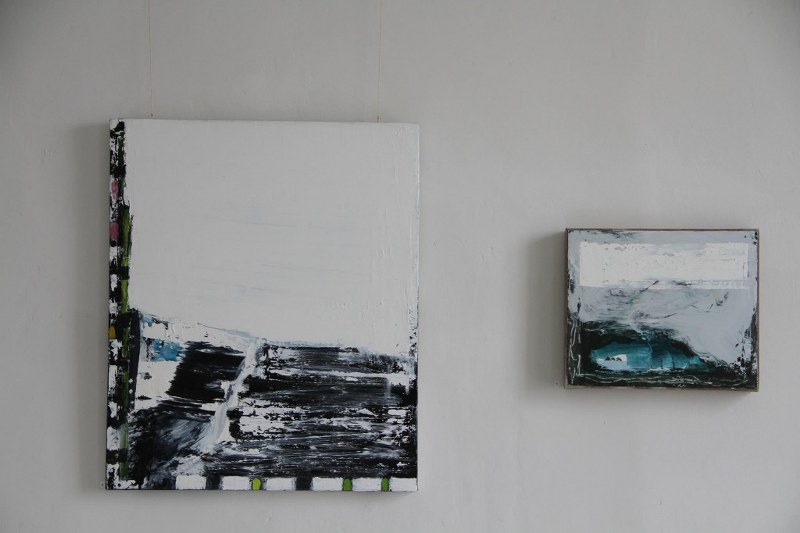 Painting on the left, Spell, White Sea-Black Sod on the right Gaze by Eddie Kennedy